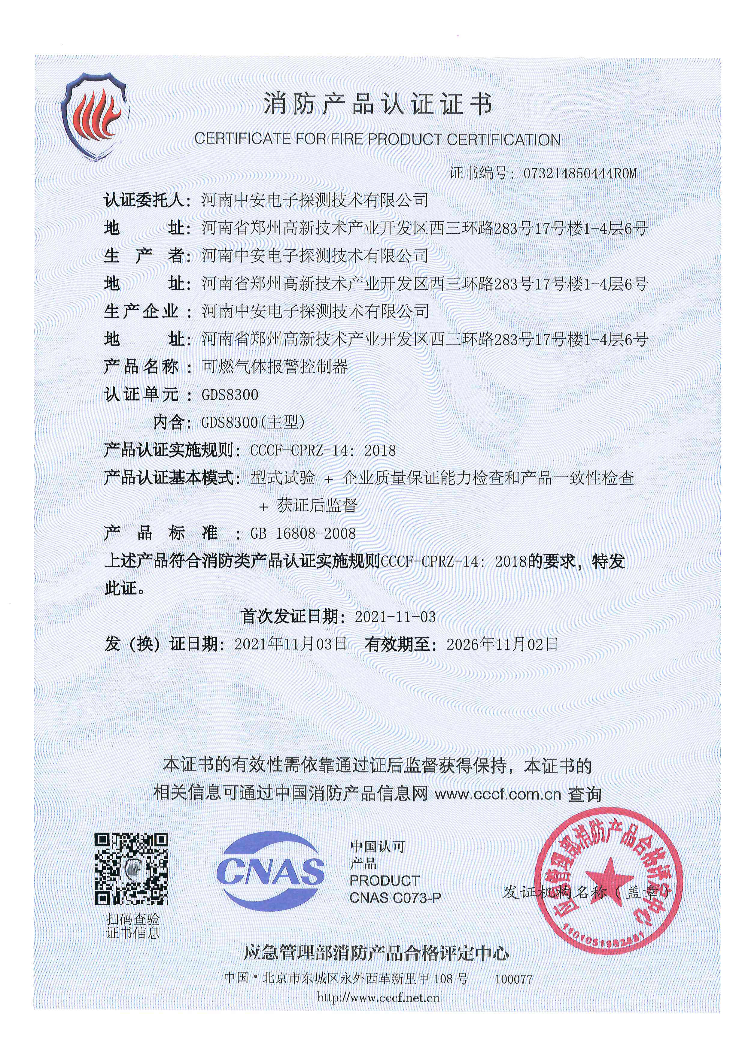 GDS8300消防產(chǎn)品證書